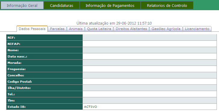 Após isto surge um ecrã de consulta de informação com grande importância para a gestão da sua exploração.